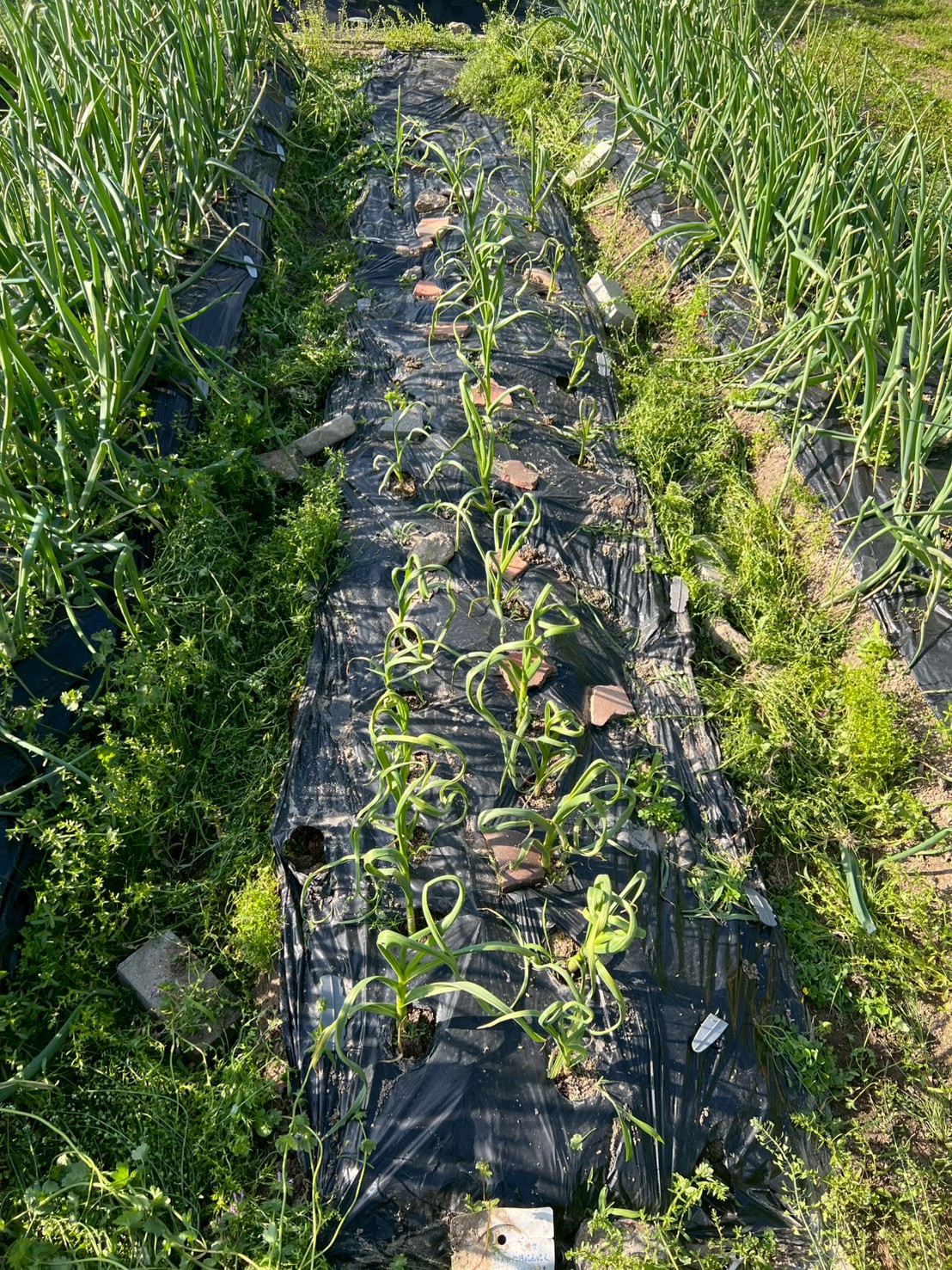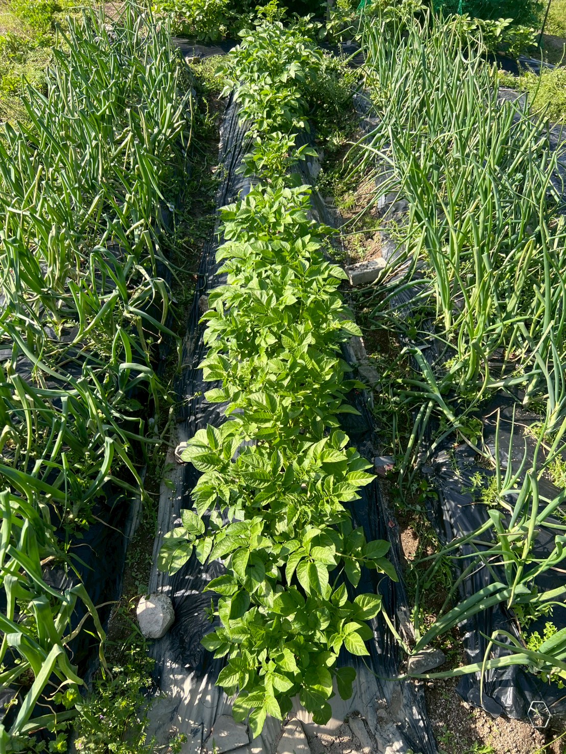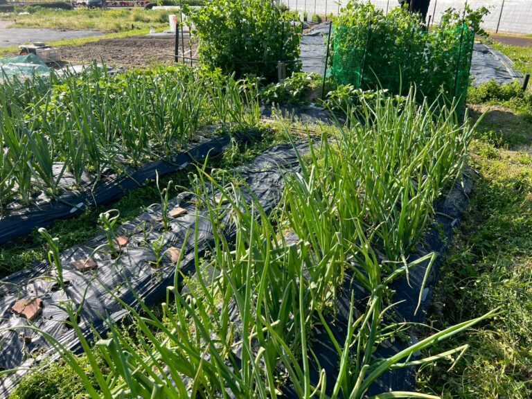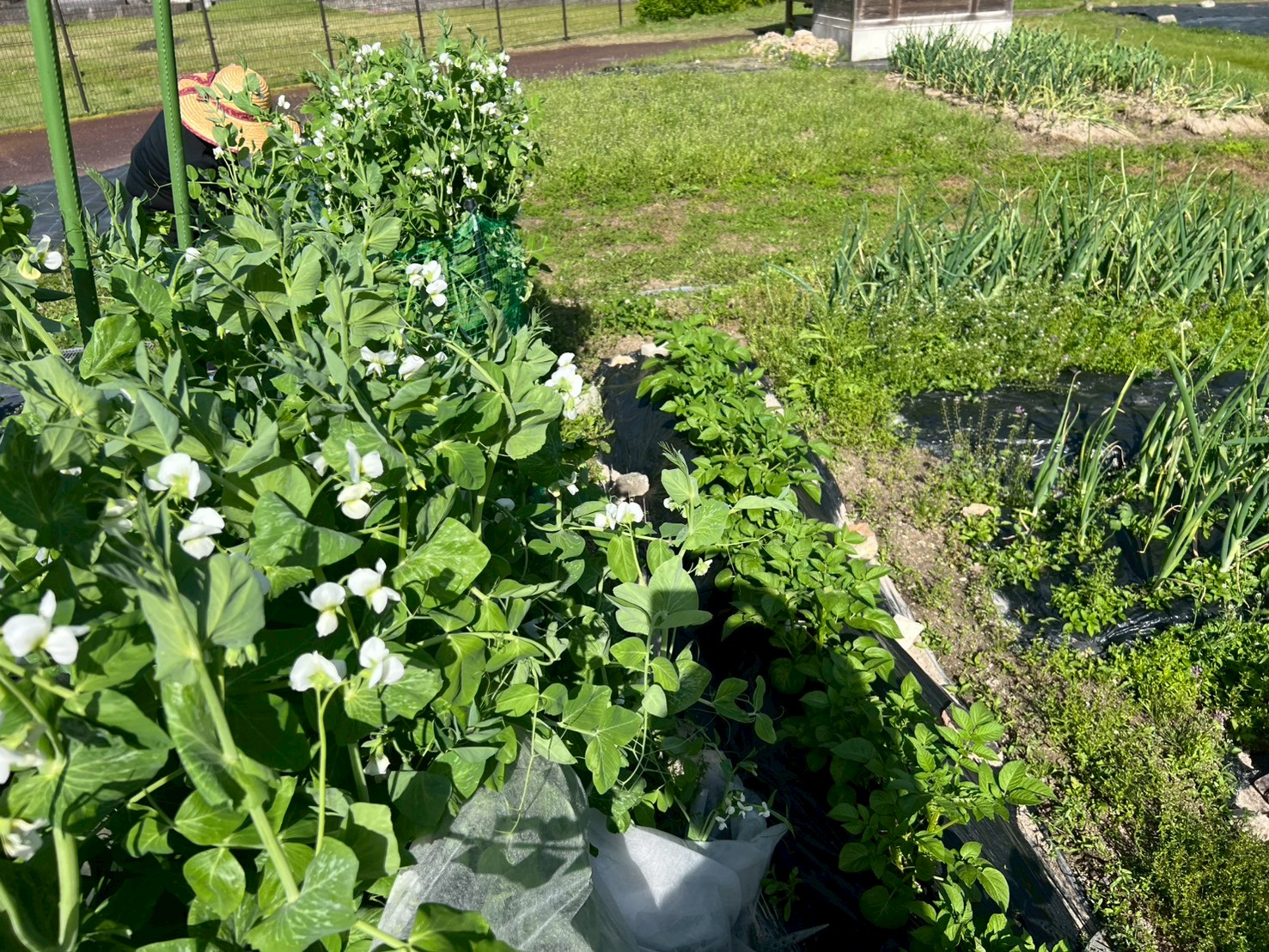 植えているのは、玉ねぎ、にんにく、じゃがいも、絹さや