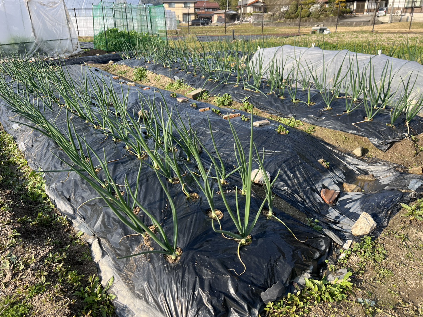 玉ねぎ、にんにく、絹さや、じゃがいもを植えています。